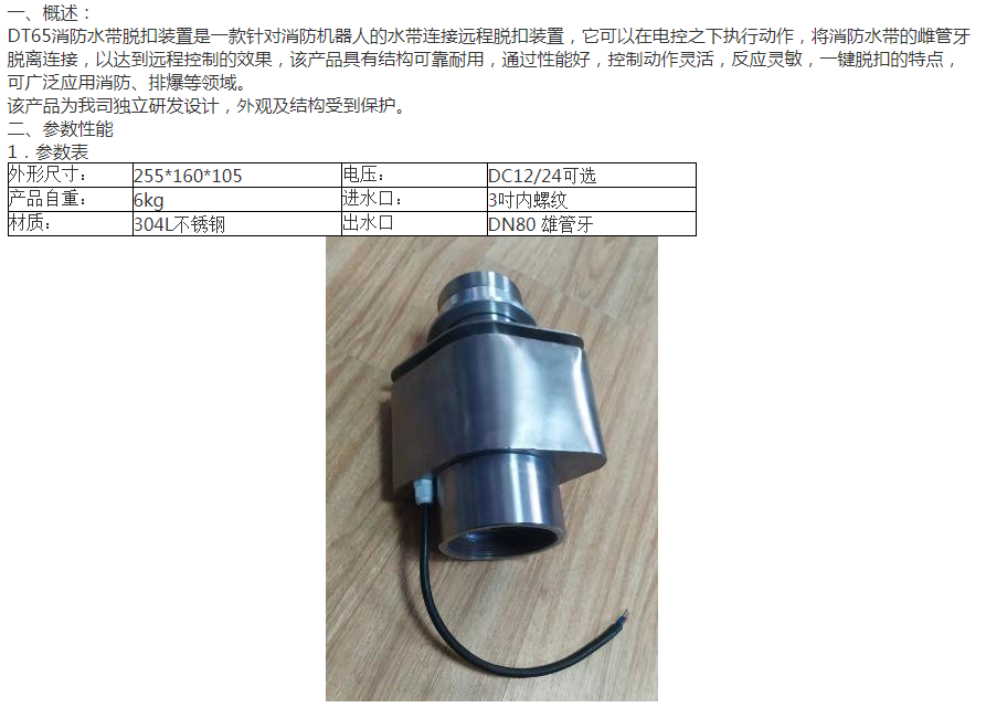 江蘇DT80 消防水帶電脫扣裝置